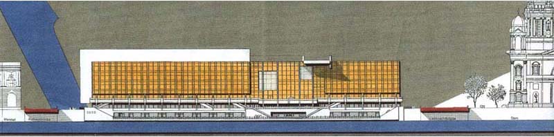 sprachlichen Ausformung im Zwischenbereich von Dom und Lustgartenfassade sehr zurückhaltend. Dadurch wird ein Kontrast gesetzt,