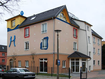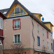 | Treffpunkt-Lokal-Quartier-MitmenschDas Quartier beinhaltet zwei Gebäude. Im ersten Gebäude sind eine Herberge für behinderte Menschen mit 24 Betten, ein Restaurant mit 60 Sitzplätzen und 3 barrierefreie Wohnungen untergebracht. Das zweite Gebäude beinhaltet 4 Wohnungen in den Obergeschossen und Veranstaltungsräume im Erdgeschoss.Der farbig, spielerische Umgang mit der Architektursprache soll die Individualität  und Lebensfreude der Bewohner und Nutzer zum Ausdruck bringen.