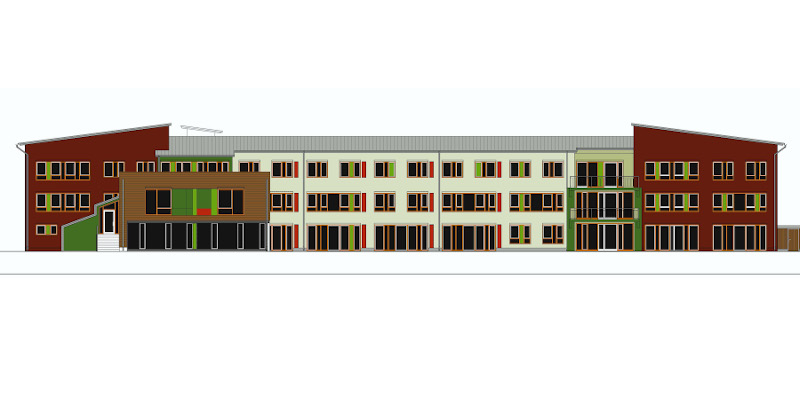 im OG ist eine Kita und im 2.OG eine Herberge für Kinder und Erwachsene und ein Krisenwohnheim für Kinder und Jugendliche.
