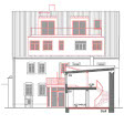 ausgebaute Dachgeschoss erneuert und weiter aus- gebaut. Der Aus- und Umbau erfolgt in enger Abstimmung mit dem Amt für Denkmalpflege. Die Erschließung der Wohnungen wird geändert